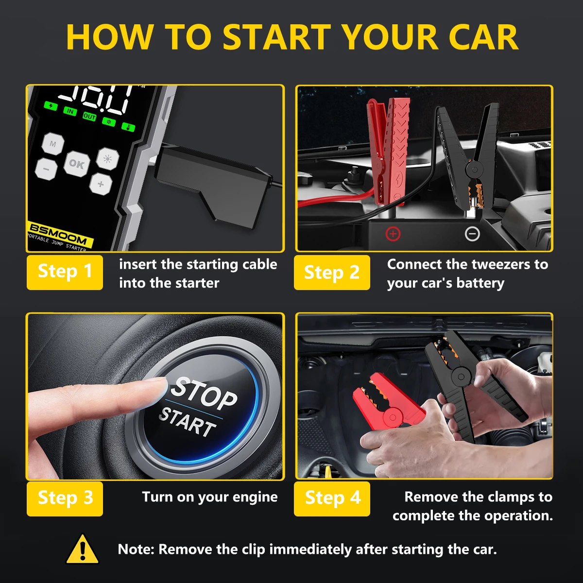 7000A Car Jump Starter with Air Compressor Battery Booster 12V Power Bank with LED Flashlight, Smart Cable with Voltage Display
