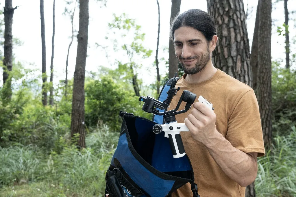 The gimbal can wirelessly connect to the camera either via a control cable or Bluetooth,