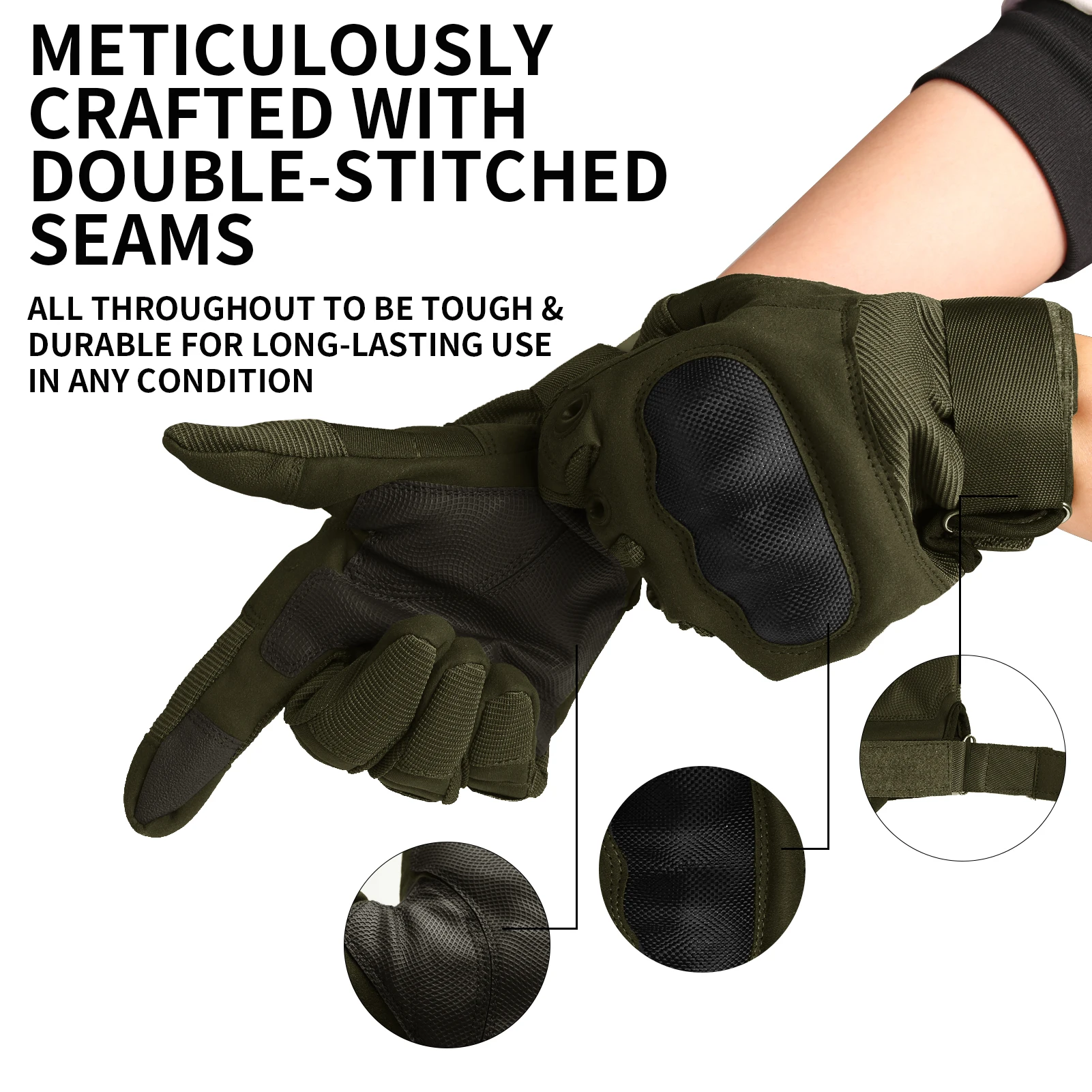 PROFESSIONAL PROTECTION: Our gloves for men follows the people-oriented design philosophy, carbon hard knuckle shell, reinforced palm and double stitching for heavy duty protect your hands from abrasion and impact in sports and activities