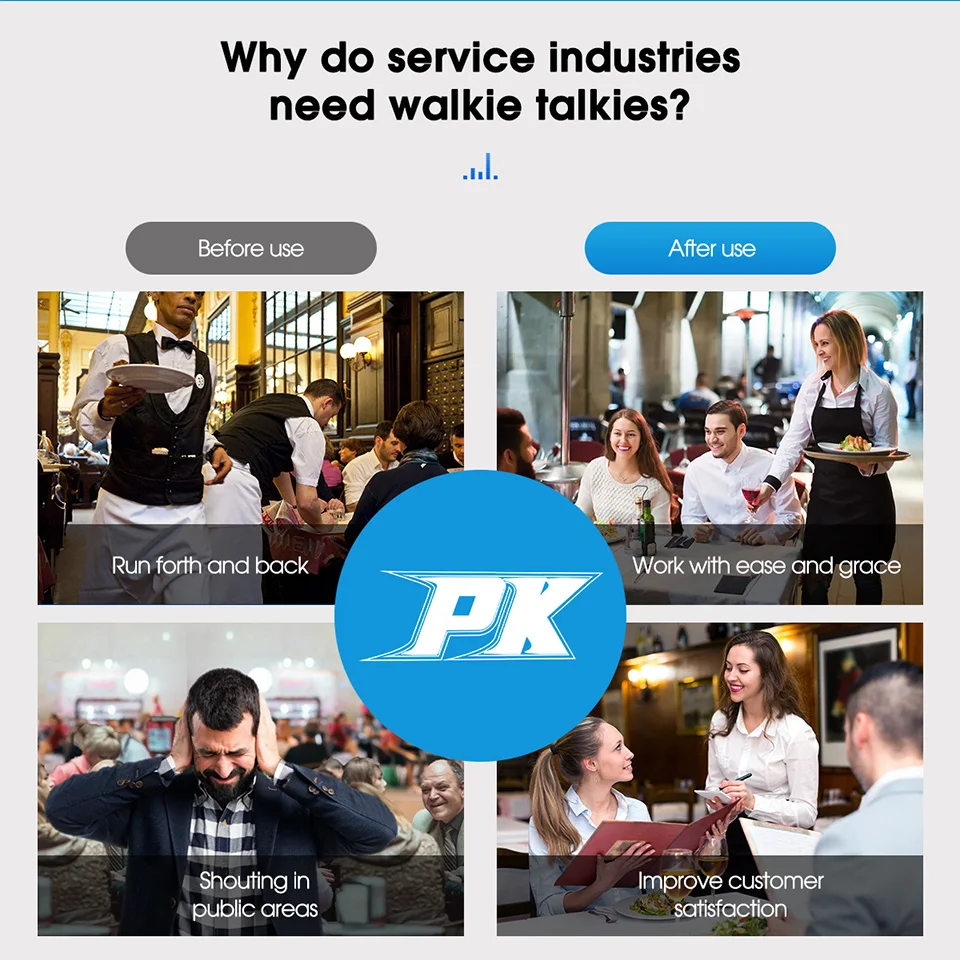 Work out of box,easy operation.You can realize the instant communication in your teams in the same channel when pressing PTT button.