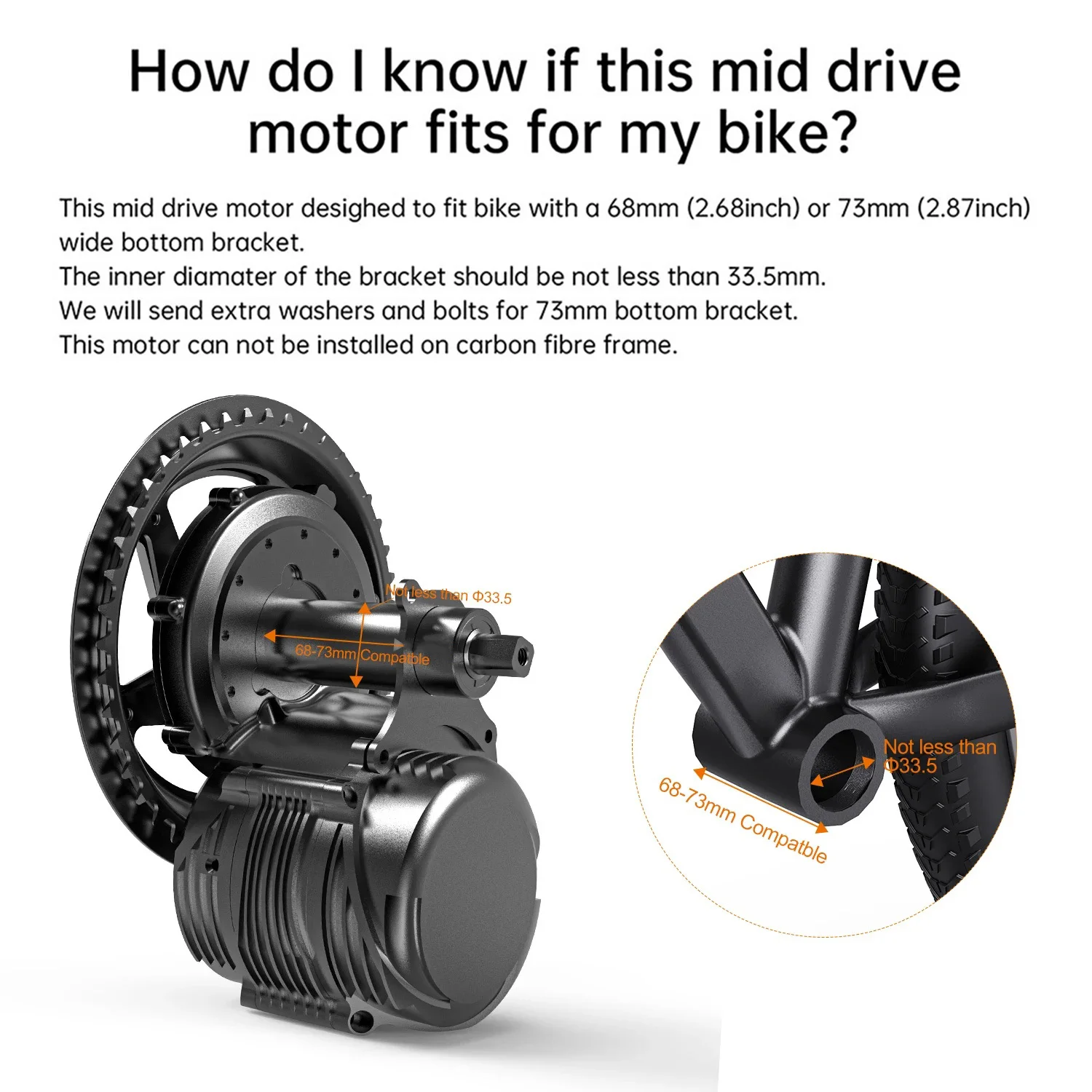 If mechanical collisions happened between motor and frame, add gaskets, we will send extra 1pcs 42*35*1.0 and 2 pcs 42*35*1.5 gaskets. If you do not add gaskets, it is easy crack the shell and destroy torque sensor.