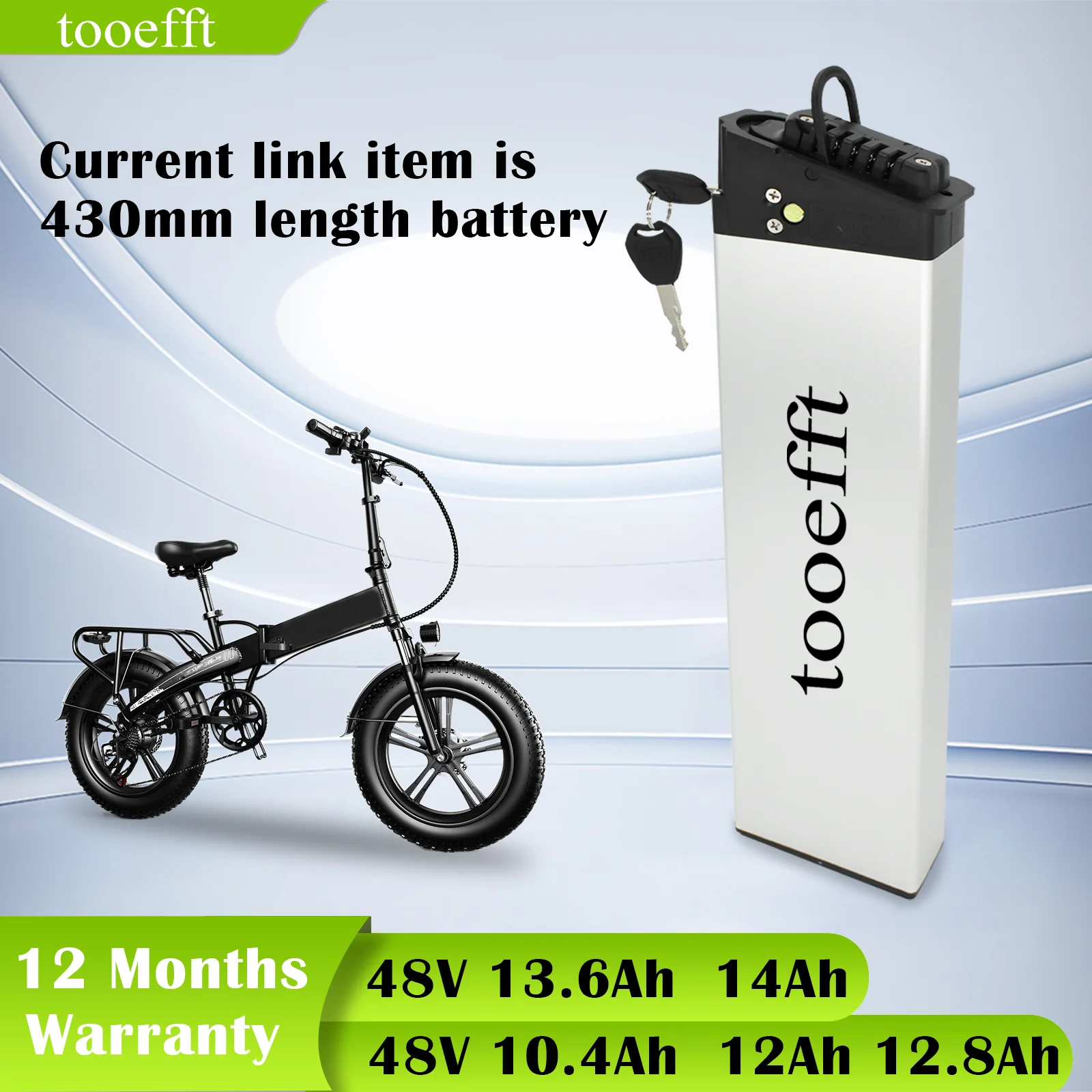 ðŸšÃ‚´Ã£€Product Parameter】 Battery Size: 430mm x 101mm x 42mm (16.93inch x 3.97inch x 1.65inch). 48V 12Ah/12.8Ah/13.6Ah/14Ah is suitable for 0-1000w motor. 48V 10.4Ah fits for 0-500w motor Charger: 54.6V 2-3A